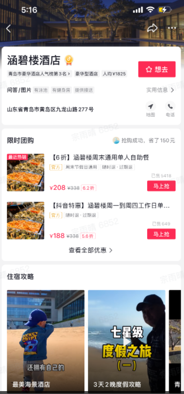 eg: 双人酒店+双人早餐/自助+温泉馆门票