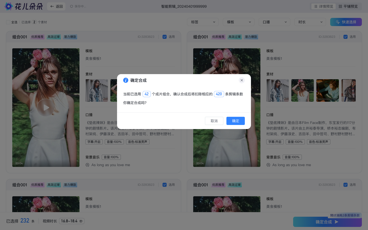 花儿朵朵4.0对视频合成算法也进行了升级,今后合成成片的质量将更加优质,剪辑效率也将大幅提升。